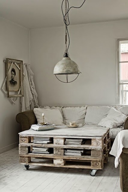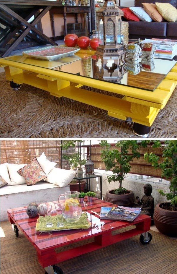 Şimdi mevcut sehpanızı bir kenara kaldırın, yerine bir palet koyun. İşte yeni sehpanız hazır. 🙂