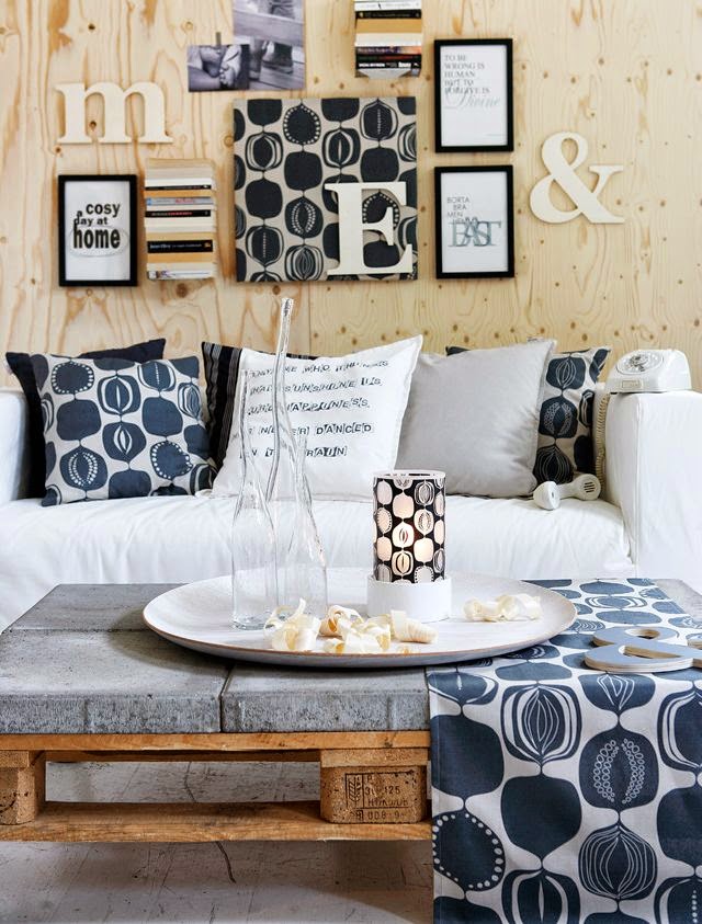 Palet sehpanızın üzerine cam yerine beton taşlardan koyarak çok farklı bir tasarıma imza atabilirsiniz.