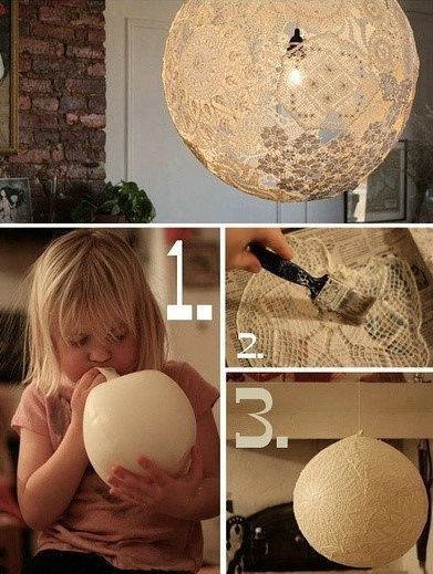 Önce balonu şişirin. Ardından danteli tutkal yardımı ile balona yapıştırın. Danteli yapıştırdıktan sonra 2-3 gün kurumasını bekleyin. Yapışkan iyice kuruduktan sonra balonu deliklerden hafifçe ittirerek dantelden ayırın. Ardından balonu patlatın ve balonu dantel avizenizin içinden çıkarın.