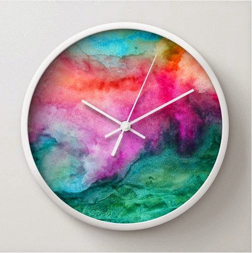 Ve sulu boya efekti ile tasarlanan bir duvar saati.