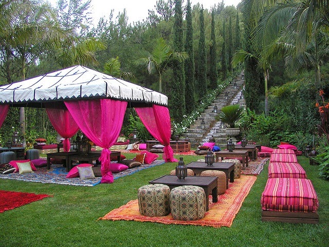 Bohem düğün dekorasyonunda canlı renkleri bir arada kullanın. Pembe, turuncu, yeşil, kırmızı, mavi… Korkmayın; her şey umduğunuzdan daha uyumlu görünecek!