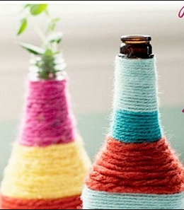 Bu kendin yap fikrini mutlaka deneyin. Tabii yaratıcılığınızı işin içine katmaktan da çekinmeyin. Özellikle renkli iplerle daha hoş süslemeler elde edebilirsiniz. Tıpkı bu şişeler gibi. 🙂
