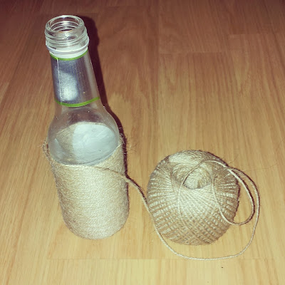 Kına gecesi hediyesi yapmak için Eminönü’ne malzeme almaya gittiğimizde hasır ip de aldım. Aklımın bir köşesinde internette örneklerine rastladığım iplerle sarılı şişeler vardı. İçtiğim sodaların şişelerini bir köşede biriktirmeye başlamıştım zaten. Tek eksiğim ipti. 🙂
