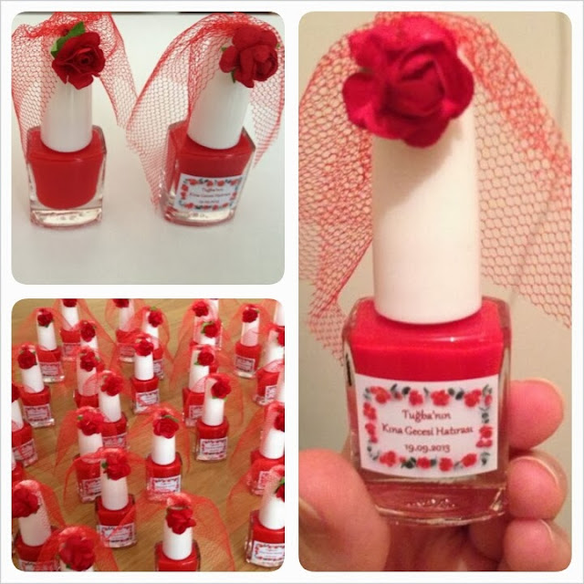 En yakın arkadaşım Eda’nın ablasının kına gecesi vardı geçtiğimiz Perşembe. Çok güzeldi, çok eğlendik. 🙂 Ama geceye bizim davetlilere kına hediyesi olarak hazırladığımız ojeler damgasını vurdu. 🙂