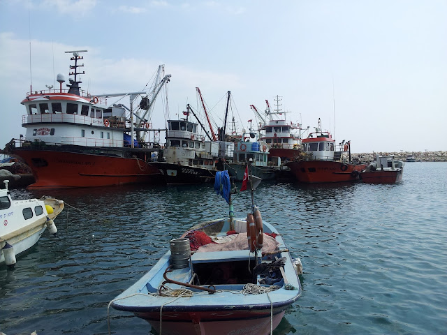 Küçük büyük birçok balıkçı teknesinin bulunduğu Küçükkuyu limanı… Yatları da unutmamak lazım. 🙂