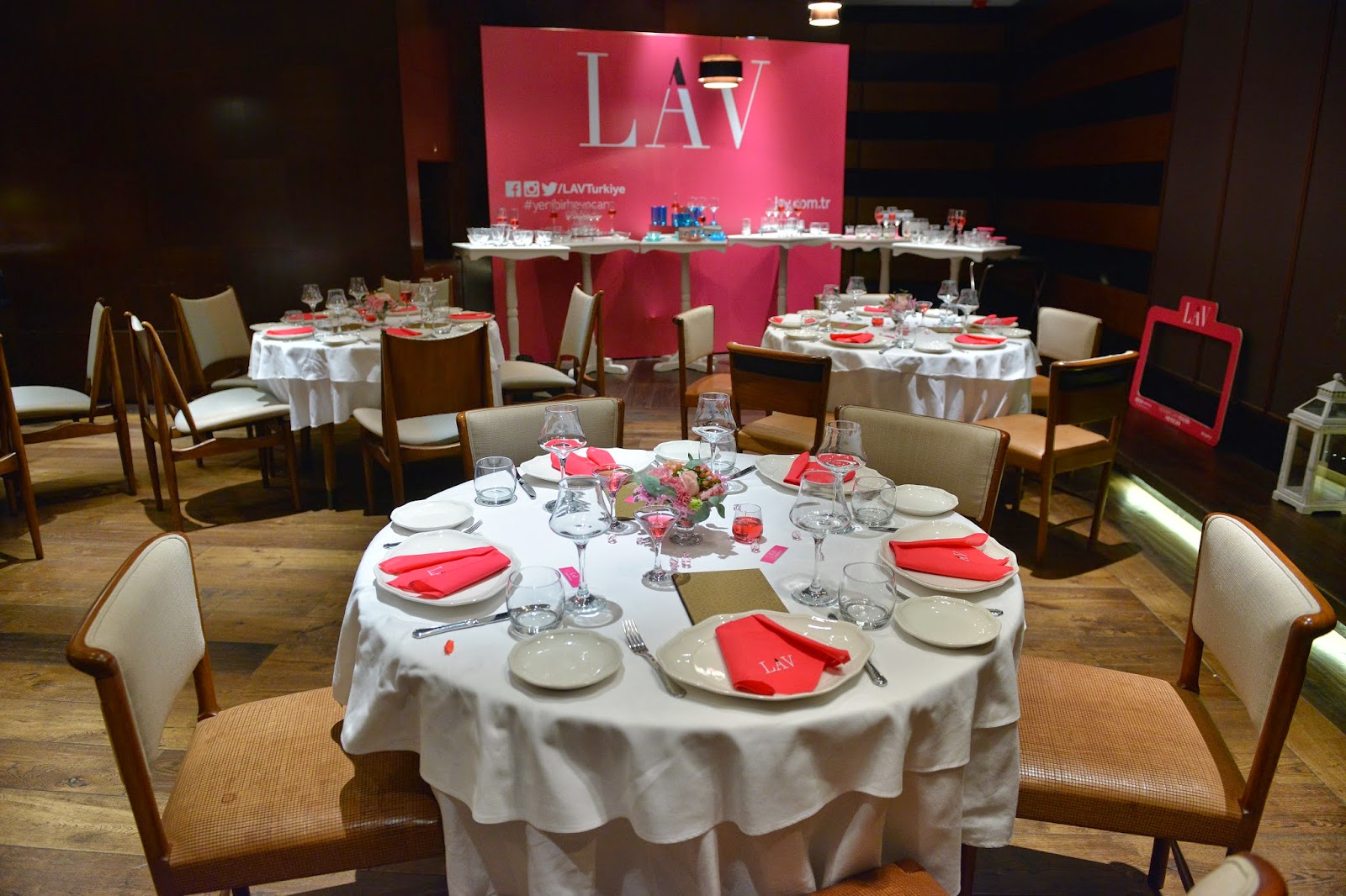 LAV Blogger Etkinliği için hazırlanan masalardaki tüm cam ürünler tabii ki markanın tasarımları. Pembe renkli LAV logolu peçeteler, pembe mumlar masaya heyecan katıyor 🙂