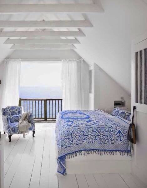 Mavi pencereler, beyaz duvarlarda nazar boncuğu gibi duruyor.