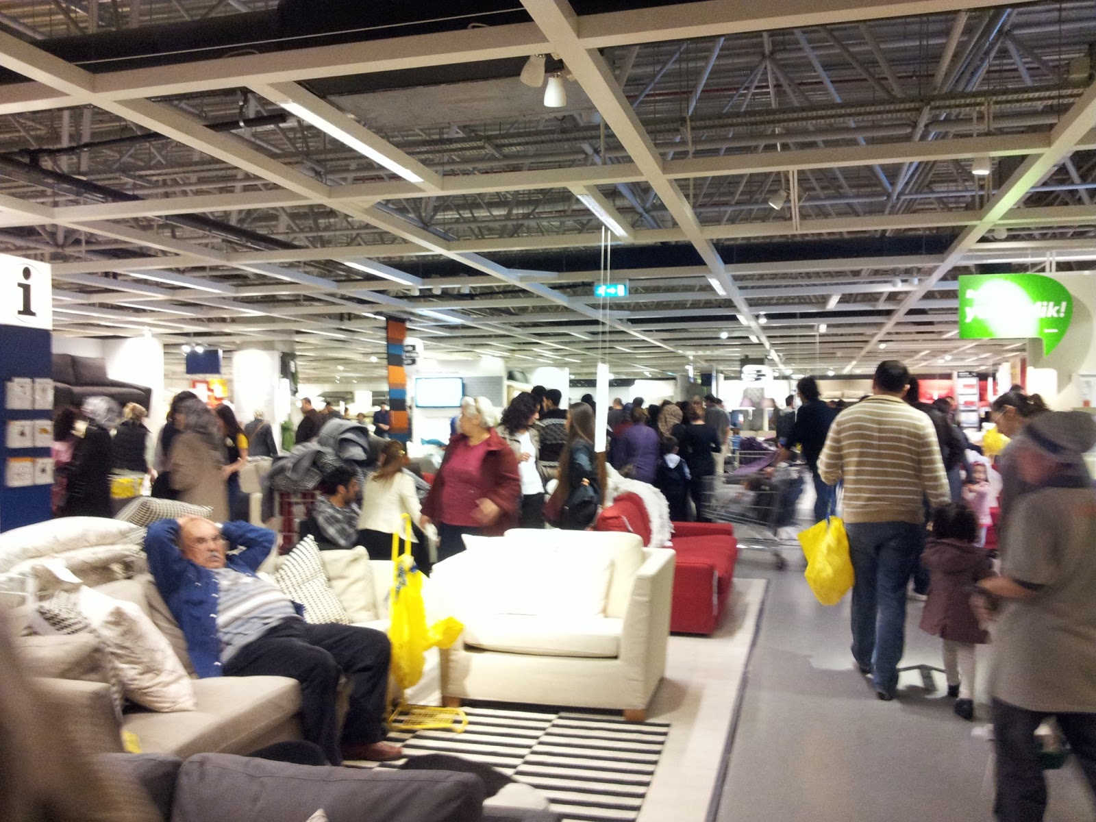 Hafta sonuymuş, kalabalıkmış dinlemeden tuttum Mehmet’i kolundan IKEA’ya sürükledim. 🙂 Ön hazırlık şart tabii. 🙂 Almasak da baktık, sonra bol bol fotoğraf çektik. Hatta benimkinin şarjı bitti, Mehmet’inkiyle devam ettik. 🙂 O derece yani. 🙂