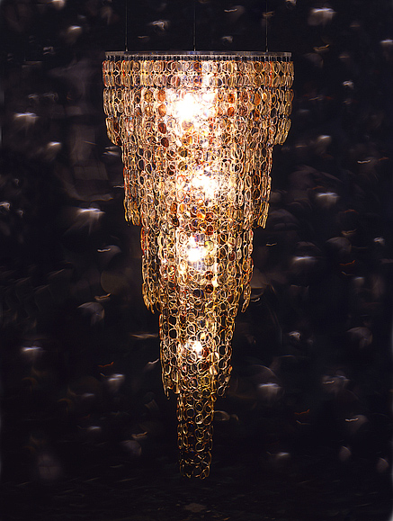 Sadece aydınlatma ürünleri tasarlayan tasarımcının farklı objeler kullanarak yaptığı değişik avizeler de var.