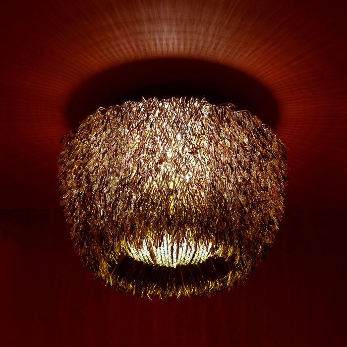 Tasarımcı bu avizeyi gözlük sapı ile yapmış. Çok da başarılı bir uygulama olmuş.