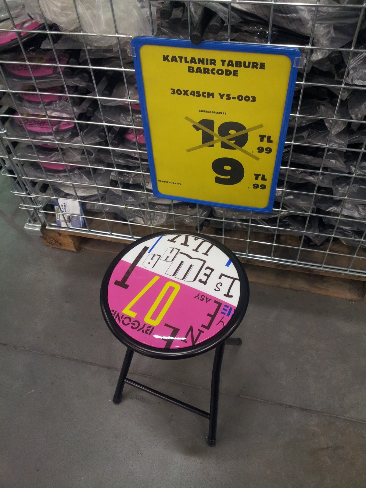 Katlanabilen tabureler farklı desenleri ile hemen dikkatimi çekti. Tabii fiyatı ile de. 🙂 Gerçi fiyatında değişiklik olmuş olabilir, kimseyi yanıltmak istemem. Ama yazlık evi, balkonu ve bahçesi olanlar için iyi bir tercih olabileceğini belirtebilirim.